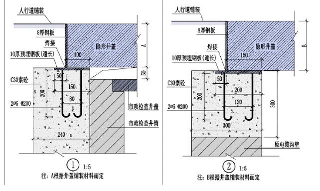 (1)原則上,圓形檢查井采用雙層井蓋設(shè)計(jì),電纜溝等方形井采用單層井蓋設(shè)計(jì)。