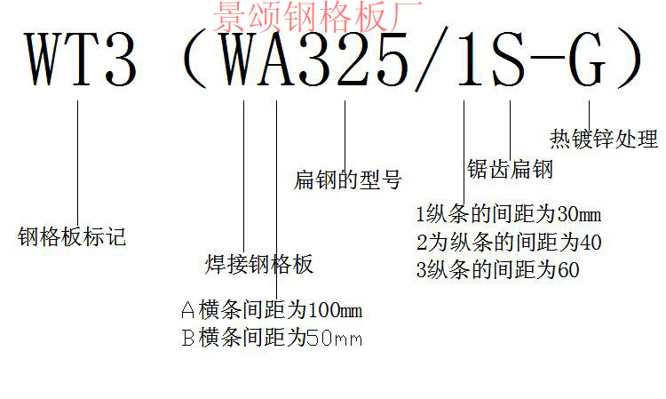 2.WT3(WA325/1S-G)鋼格板的型號表示: