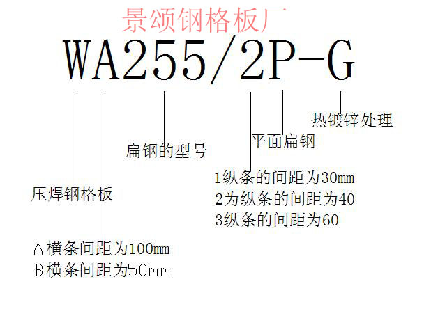 4.WP3(WA253/2-G)鋼格板的型號表示: