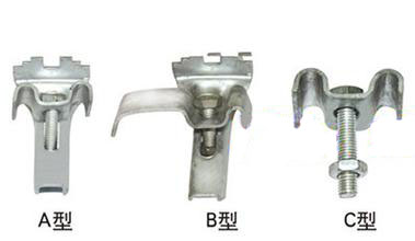 C型:由一塊帶雙鉤的上壓板和一支可焊接在支撐構件上的M8的六角頭螺栓組成。